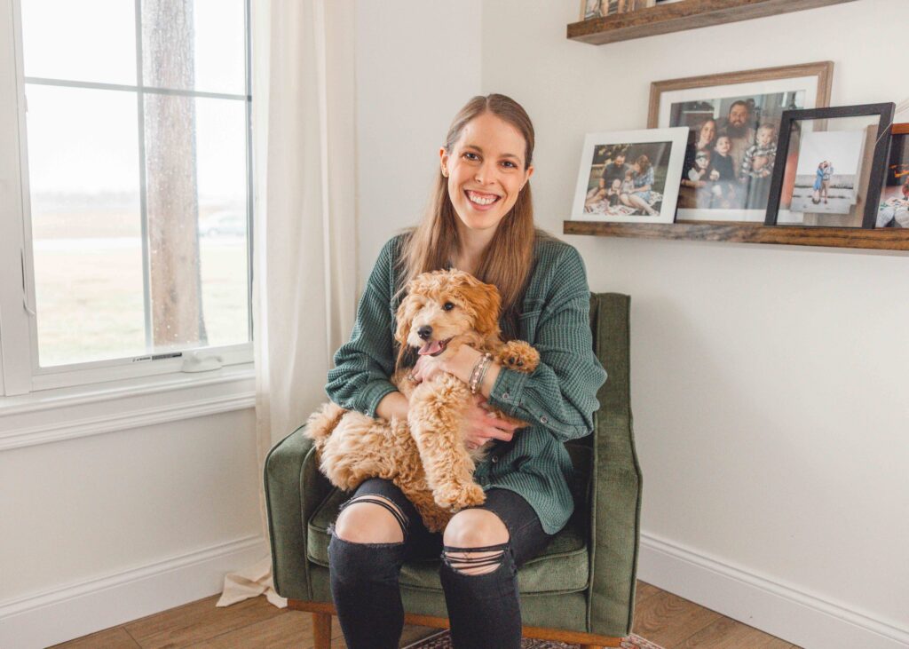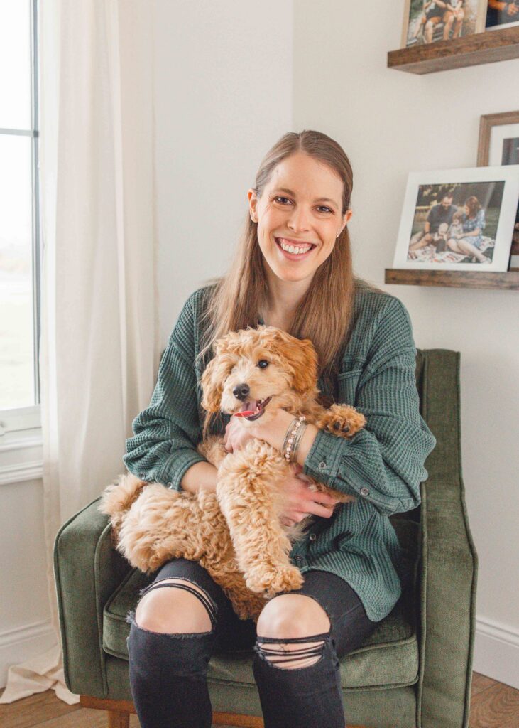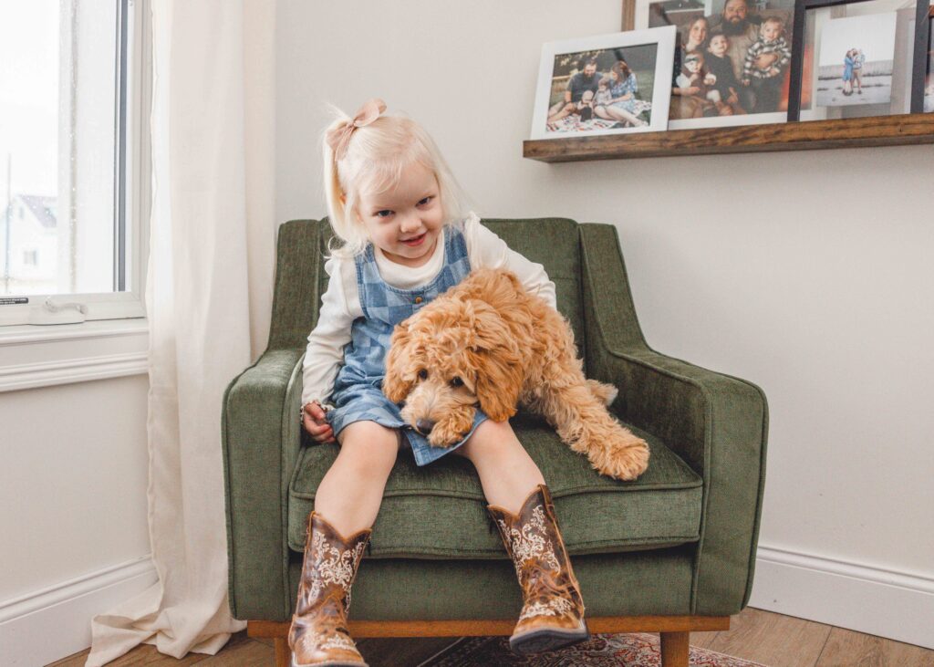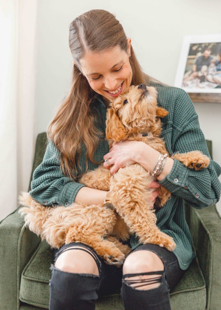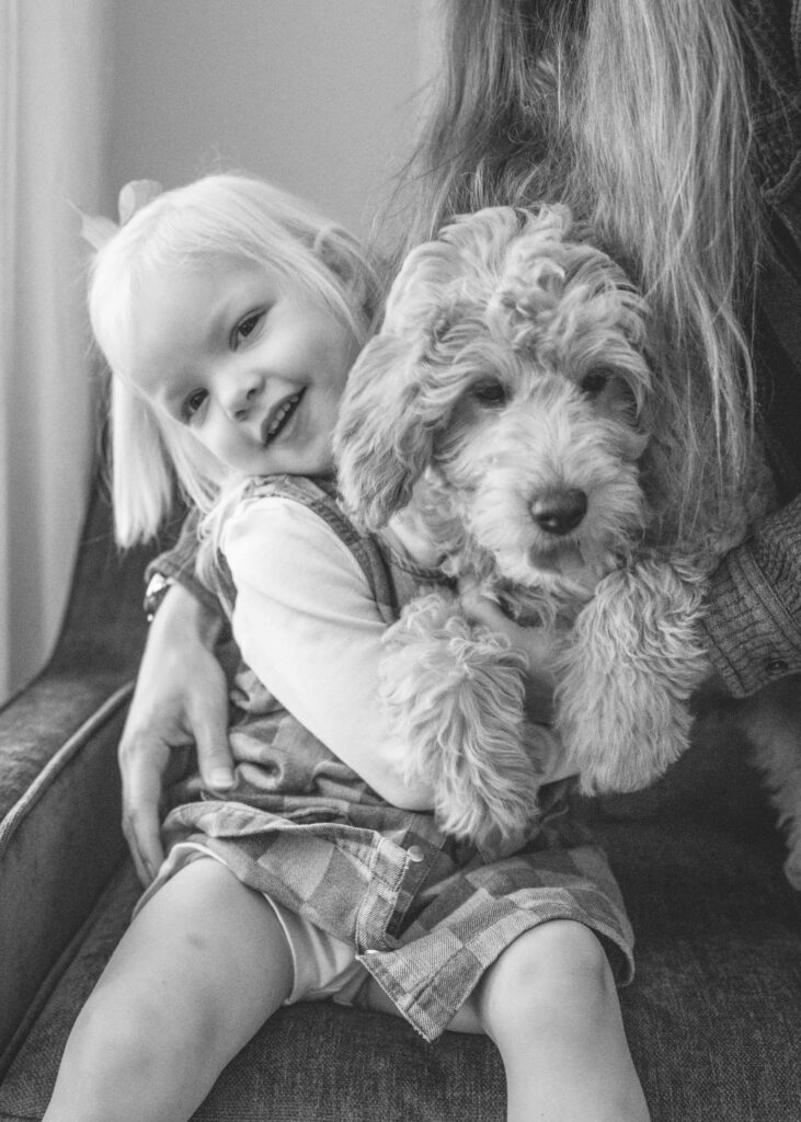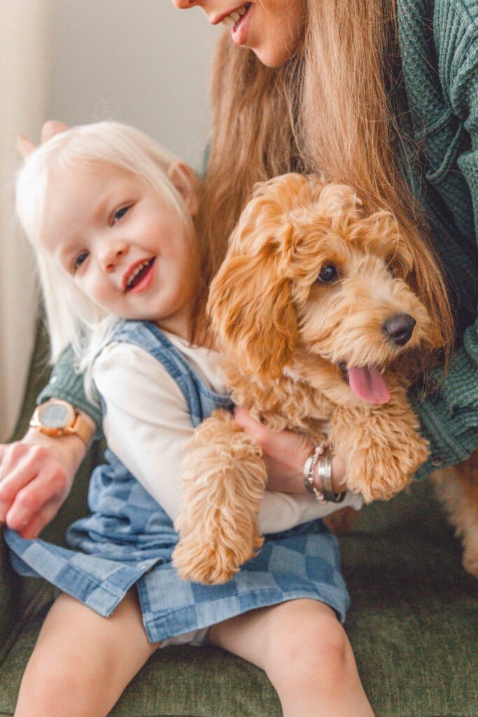 For this session, I had the joy of visiting the beautiful Charlson family home to meet their newest addition, Luna! Luna is an adorable poodle–border collie mix puppy with the softest curls and the most curious personality!