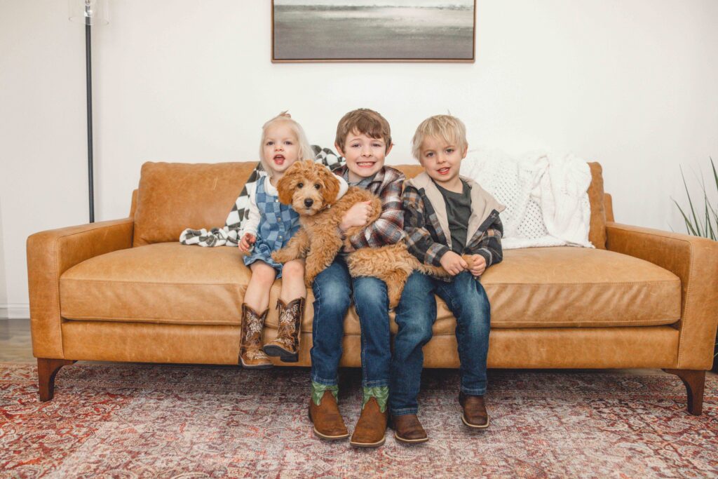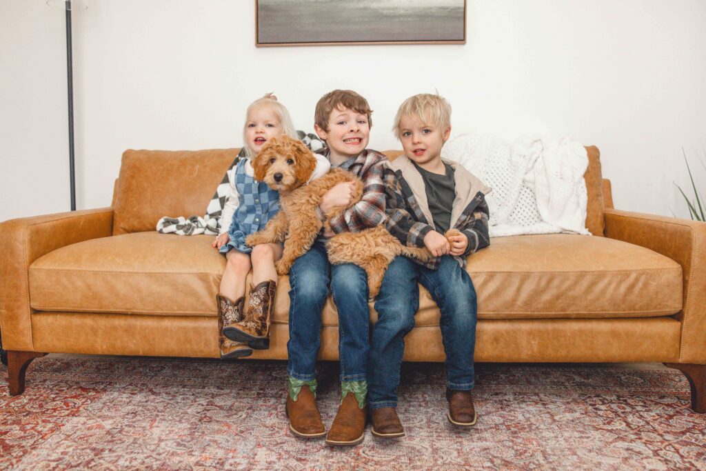 The energy in the house was exactly what you’d imagine! Laughter, excitement, and Luna happily bouncing from person to person as if she had always belonged there. Luna fits right in with Oliver, Hudson, and Vivian!