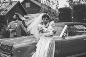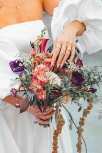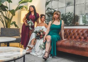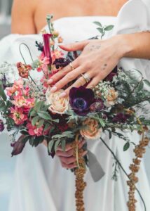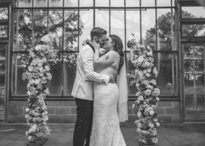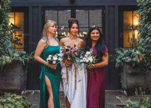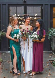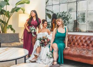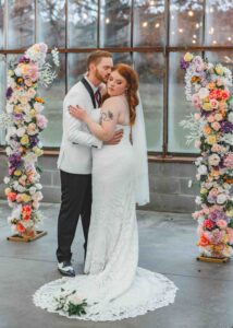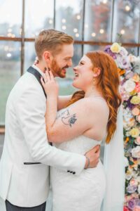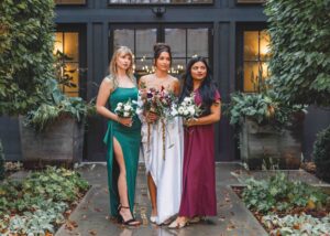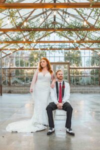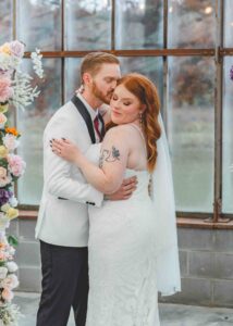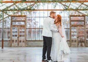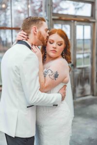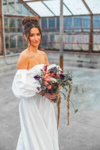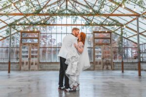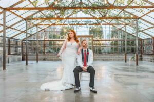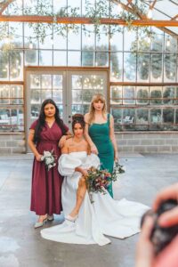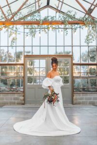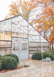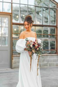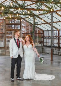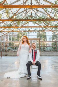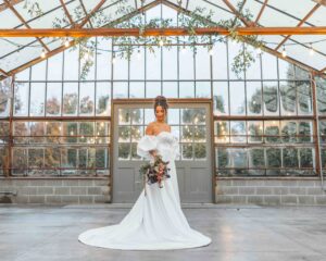 This beautiful styled shoot, hosted by Catherine Hope Photography at Jorgensen Farms, embraced every bit of that magic! The day began with steady rain falling over the farm’s lush greenhouse and stylish buildings. Instead of dampening the mood, the weather created an atmosphere that felt cinematic and romantic!